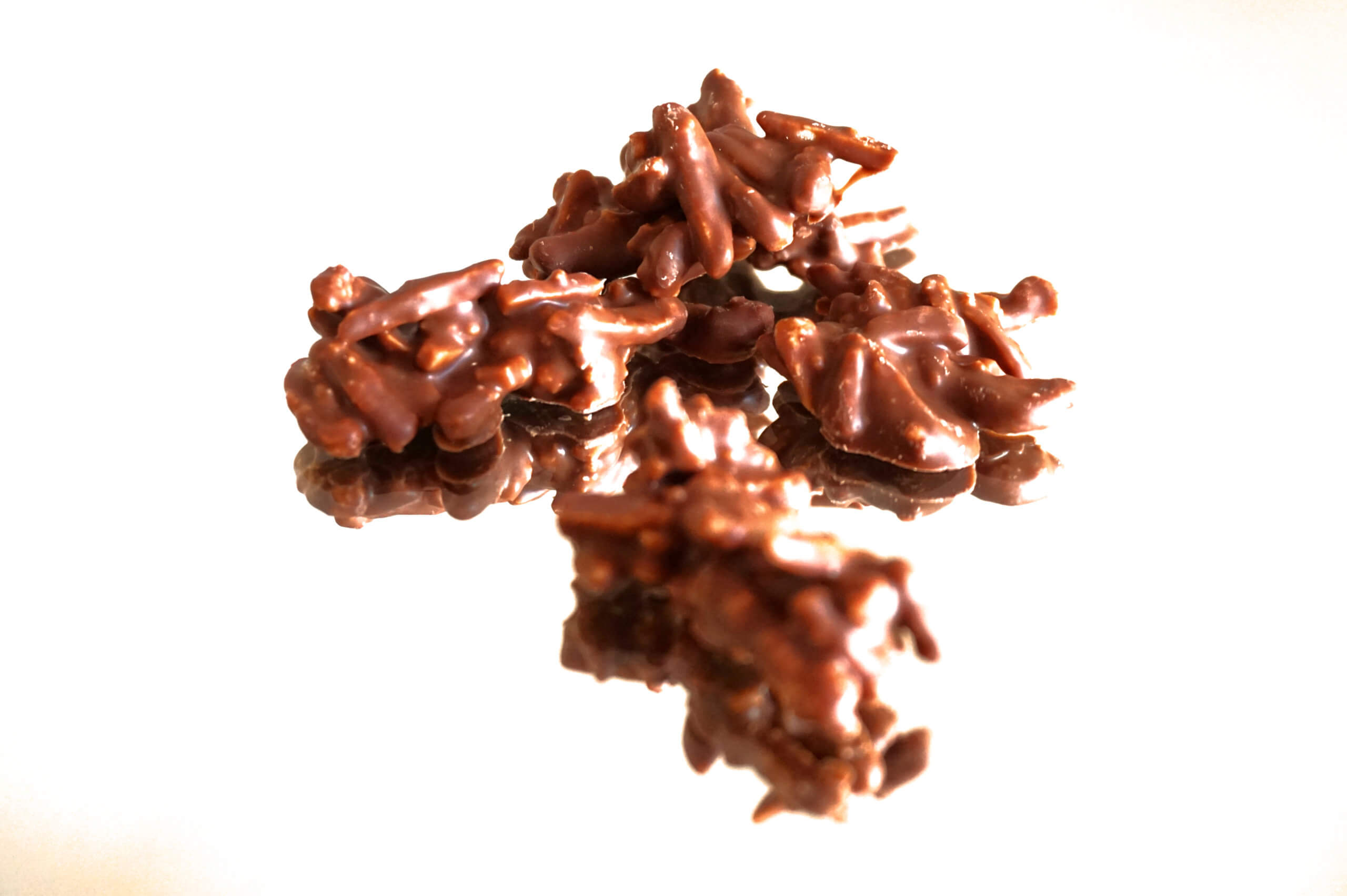 Ingrédients mendiants noir : fèves de cacao du Costa Rica 64 %, sucre, beurre de cacao, extrait de vanille, amandes, noisettes, pistaches, cranberries, raisins secs